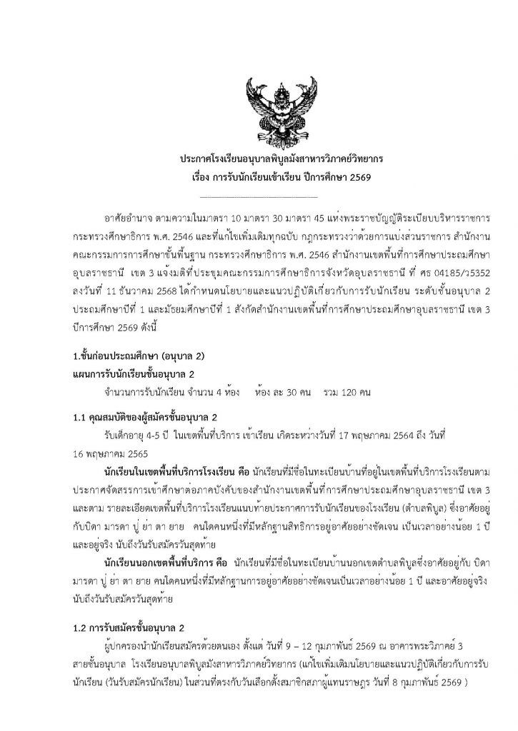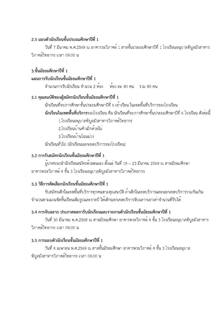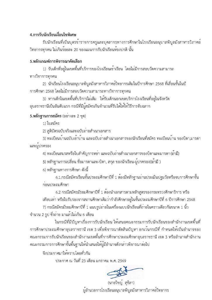 ประกาศการรับนักเรียนเข้าเรียน ปีการศึกษา 69 (แก้ไขเพิ่มเติมนโยบายและแนวปฏิบัติเกี่ยวกับการรับนักเรียน (วันรับสมัครนักเรียน)