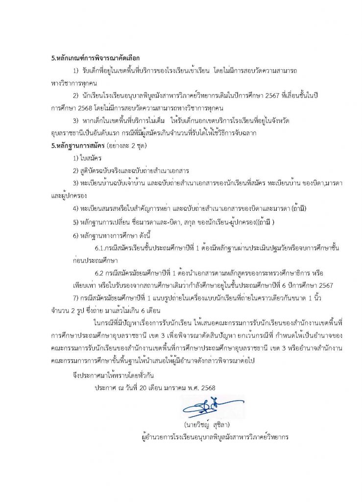ประกาศรับสมัครนักเรียนปีการศึกษา 2568